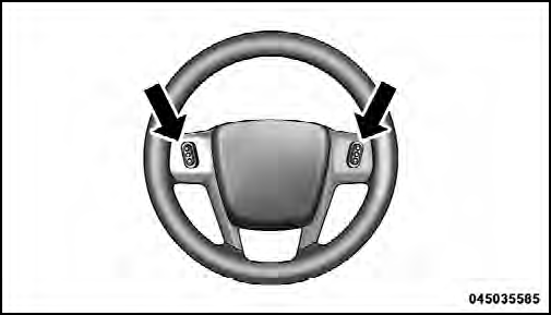 The remote sound system controls are located on the surface of the steering wheel at the three and nine o’clock positions.