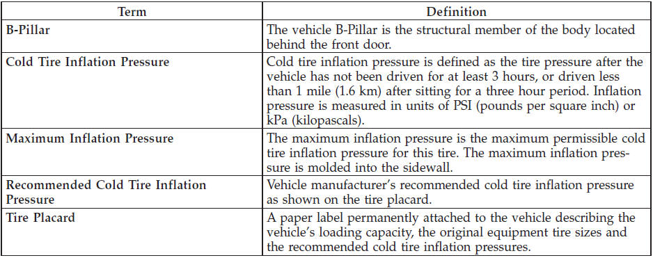 Chrysler 300 / Chrysler 300 Owners Manual / Starting And Operating / Tire Safety Information / Tire Terminology And Definitions