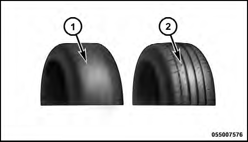 These indicators are molded into the bottom of the tread grooves. They will appear as bands when the tread depth becomes 1/16 in (2 mm). When the tread is worn to the tread wear indicators, the tire should be replaced.