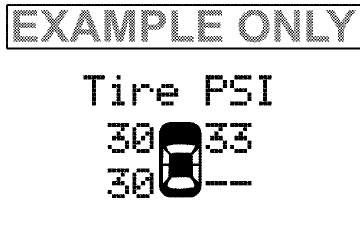 The EVIC will also display a SERVICE TPM SYSTEM message for a minimum of five seconds when a system fault related to an incorrect sensor location fault is detected. In this case, the SERVICE TPM SYSTEM message is then followed with a graphic display with pressure values still shown. This indicates that the pressure values are still being received from the TPM sensors but they may not be located in the correct vehicle position. The system still needs to be serviced as long as the SERVICE TPM SYSTEM message is displayed.