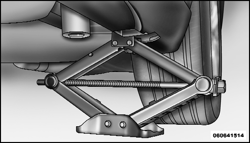 4. Place the jack underneath the lift area that is closest to the flat tire. Turn the jack screw clockwise to firmly engage the jack saddle with the lift area of the sill flange.
