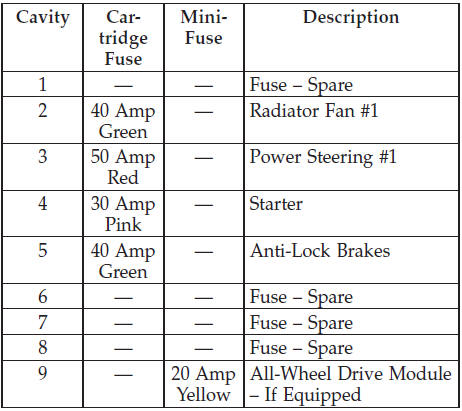 The Integrated Power Module is located in the engine compartment. This module contains fuses and relays.