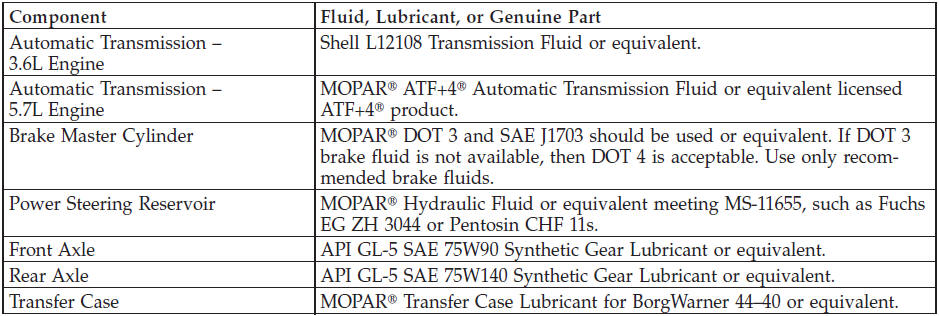 Chrysler 300 / Chrysler 300 Owners Manual / Maintaining Your Vehicle / Fluids, Lubricants, And Genuine Parts / Chassis