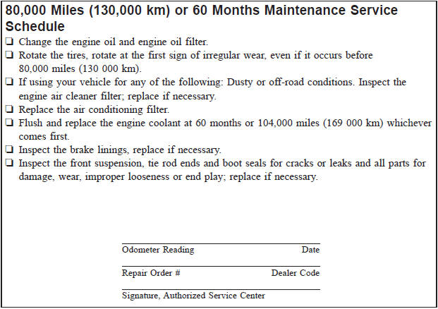 Refer to the Maintenance Schedules on the following pages for the required maintenance intervals.