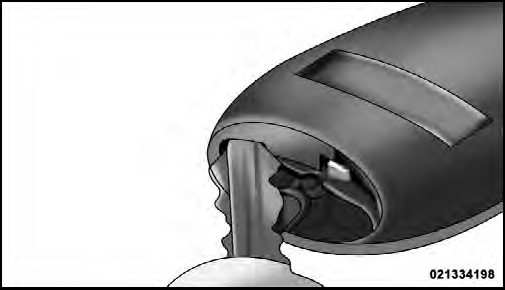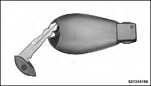 1. Remove the emergency key by sliding the mechanical latch at the top of the RKE transmitter sideways with your thumb and then pull the key out with your other hand.