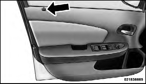 To lock each door, push the door lock knob on each door trim panel downward. To unlock each door, pull the inside door handle.