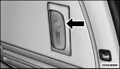 The rechargeable flashlight is mounted on the right side of the cargo area. The flashlight snaps out of the bezel when needed. The flashlight features two bright LED light bulbs and is powered by a lithium battery that recharges when snapped back into place and the vehicle is either running or the key is in the accessory position.