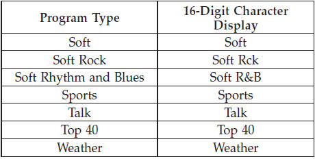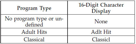 By pressing the SEEK button when the Music Type icon is displayed, the radio will be tuned to the next frequency station with the same selected Music Type name. The Music Type function only operates when in the FM mode.