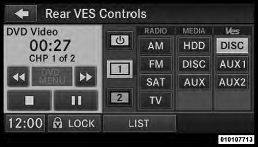 2. Touch the Rear VES soft-key to display the Rear VES Controls. If a channel list is displayed, touch the HIDE LIST soft-key to display the Rear VES Controls screen.