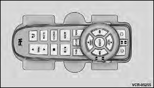 The video screen(s) come with a built in storage compartment for the remote control which is accessible when the screen is opened. To remove the remote, use your index finger to pull and rotate the remote towards you. Do not try to pull the remote straight down as it will be very difficult to remove. To return the remote back into its storage area, insert one long edge of the remote into the two retaining clips first, and then rotate the remote back up into the other two retaining clips until it snaps back into position.