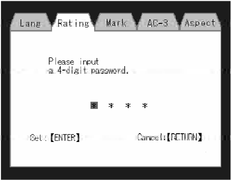 • After the four-digit password is entered, press the remote control’s ENTER button. If the password is correct, the Rating Level menu is displayed.