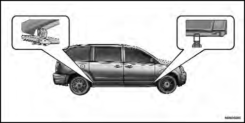 Rear jack locations are between a pair of down-facing tabs on the sill flange of the vehicle side body.