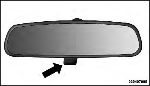Headlight glare can be reduced by moving the small control under the mirror to the night position (toward the rear of the vehicle). The mirror should be adjusted while set in the day position (toward the windshield).