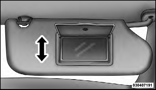 An illuminated vanity mirror is on each sun visor. To use the mirror, lower the sun visor and rotate the mirror cover upward. The lights will turn on automatically.