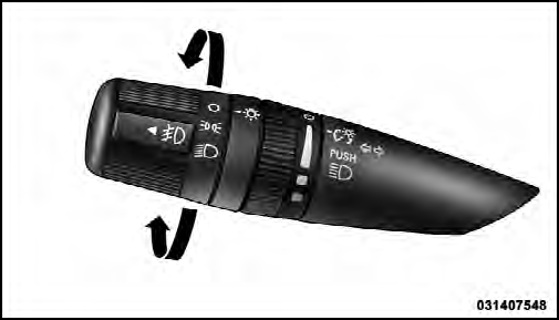 Turn the end of the multifunction lever to the first detent for parking light operation. Turn to the second detent for headlight operation.