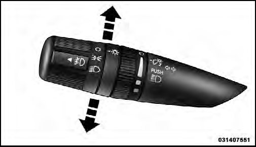Move the multifunction lever up or down and the arrows on each side of the instrument cluster flash to show proper operation of the front and rear turn signal lights.