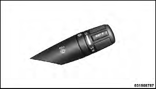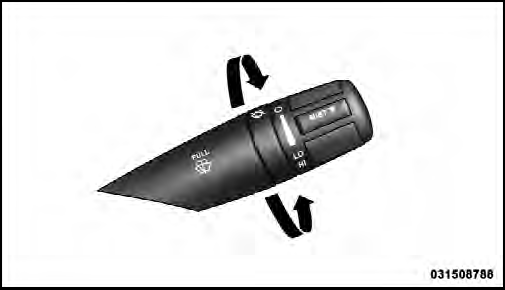 Rotate the end of the lever to the LO position for low-speed wiper operation, or to the HI position for high-speed wiper operation.