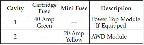 The Totally Integrated Power Module is located in the engine compartment near the air cleaner assembly. This center contains cartridge fuses and mini fuses. A label that identifies each component may be printed on the inside of the cover. Refer to the graphic below for FUSES/TIPM location.