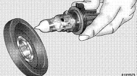 2. Reach into engine compartment and from behind the lamp assembly and grasp the connector.