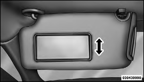 To use the mirror, rotate the sun visor downward and swing the mirror cover upward. The light turns on automatically. Closing the mirror cover turns off the light.