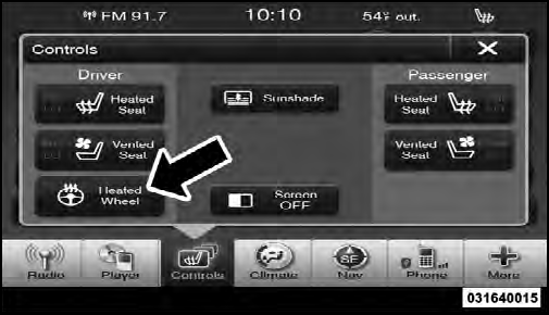 The heated steering wheel can be turned on and off using the Uconnect Touch™ System.