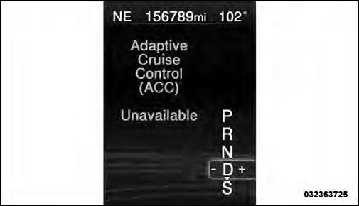 If the system turns off, and the EVIC displays “Adaptive Cruise Control (ACC) Unavailable”, there may be a temporary malfunction that limits ACC functionality.